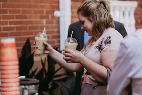 This was one of the most well done stand up receptions we have ever attended, and the weather could not have been more perfect. So many loved ones gathered around and munched on some seriously yummy food and sipped Italian sodas and iced coffee while celebrating two of the sweetest people ever.